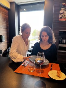 - L’expérience d’un service en restauration : ils ont été mis en situation et ont dû se mettre dans la peau de serveurs/serveuses d’un restaurant type brasserie (on ne dirait pas plutôt un restaurant bistronomique, pas trop sure du therme brasserie pour le restaurant l’Institut) en s’occupant de la mise en place de la salle du restaurant, de l’accueil client, du service et du débarrassage des tables ;