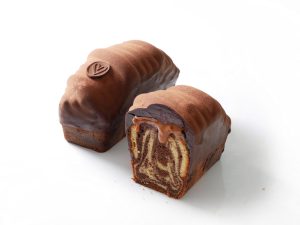 Le cake marbré tout en gourmandise, accompagné de son caramel beurre salé et de sa ganache chocolat 70%.