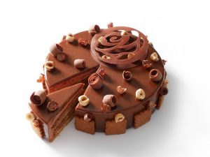 Le piémontais, succession de biscuits et praliné noisettes avec une pointe de fleur de sel, recouvert d’une mousse chocolat au lait 46 % le tout reposant sur un sablé noisettes croustillant.