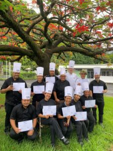 La seconde formation, également organisée sur trois jours, était consacrée à la restauration responsable, avec une approche spécifiquement adaptée aux enjeux et contraintes de la Polynésie : insularité, dépendance aux importations, produits surgelés mais aussi richesse des ressources locales.